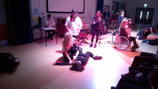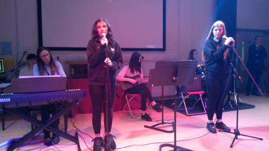 Our Music and Drama students supported the event with some very powerful performances. Year 10 GCSE Drama students enacted the poem 'War Photographer' by Carol Ann Duffy, a deeply moving description of the experiences and responsibilities of war photographers. GCSE Music students, Evie, Grace, Sophie and Esme, performed a beautiful rendition of Metallica's 'Nothing Else Matters', accompanied by Ms Wood on the piano. Their captivating and sombre pieces really captured the essence of the assembly and left the audience in awe. The assembly ended with ‘The Last Post’ and a minute’s silence. Our students demonstrated impeccable behaviour, maturity and respect throughout.